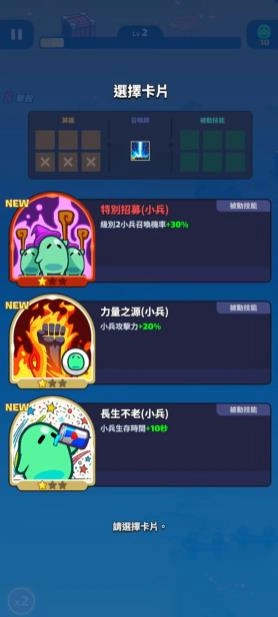 2、每次升级时,都能从三个升级选项里挑选一项来强化英雄或技能。