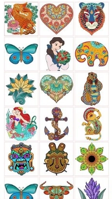 3、精致的视觉设计与轻松愉悦的背景音乐,使玩家彻底沉浸在填色的天地之中。1、每一幅填色图案都经过了用心的设计,细节之处十分饱满,能让玩家在视觉层面收获满满的满足感。