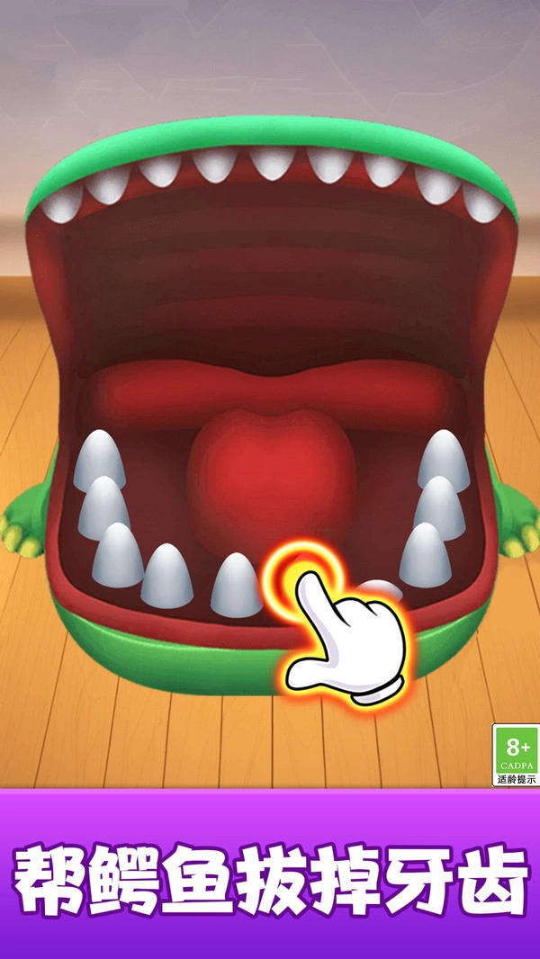 1.游戏的操作非常简单直观,玩家只需通过触摸屏幕,伸手指试探鳄鱼的嘴巴。