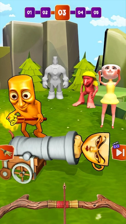 《TungTung传奇》是一款第一人称视角的动作闯关游戏。在游戏中,玩家的核心任务是借助各类武器道具战胜眼前的怪物——无论是弹弓、弓箭还是炮弹,你都需要精准调整它们的攻击角度,以闪电般的速度在怪物做出反应前将其击倒。游戏采用快节奏的闯关模式,带来极具解压感的战斗体验,让玩家能在轻松欢乐的氛围里尽情战斗、消灭怪物!
