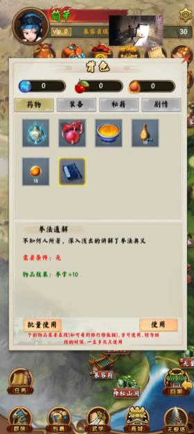 2、借助完成任务和探索活动获取武学秘籍,以此提升自身的内功与外功技能。