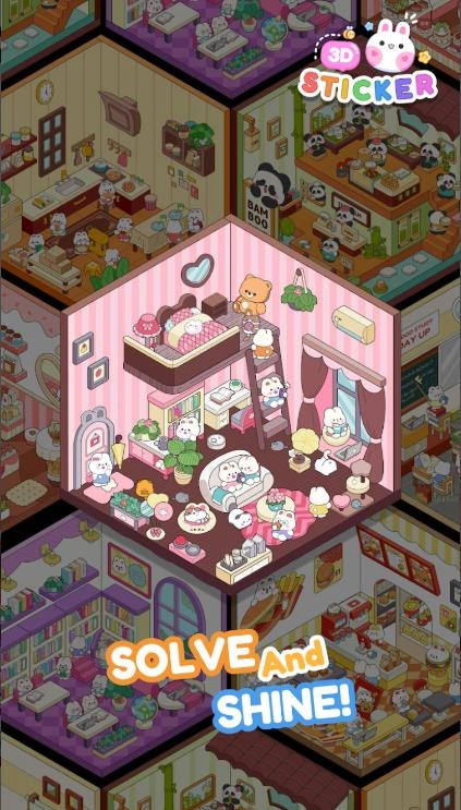在这款轻松治愈又满是创意的装饰游戏里,你会化身设计师,借助琳琅满目的彩色贴纸、家具与装饰物,给每一间房间赋予温度和独特个性。无论是温馨的卧室、极具现代感的客厅,还是梦幻甜美的儿童房、功能完备的厨房,每一个空间都盼着你的巧手来装扮。不管你钟情极简风、田园风,亦或是童话风,这款游戏都能实现你对“家”的全部憧憬。通过持续解锁新房间、完成装饰任务与挑战,你能获取更多家具和装饰贴纸,精进设计技能,打造出真正独属于自己的理想家园。
