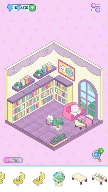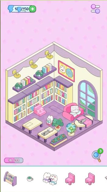 3、独特的成就体系搭配好友间的趣味比拼,能充分激发你的设计潜能。1、点击选择一个待装饰的房间。
