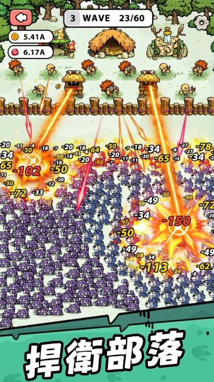 你将化身部落的守护者,引领族人们在色彩明快的卡通荒野里构筑防线,抵御一波接一波调皮野生动物的侵袭。游戏操作简便,无需复杂指令或繁琐策略——只需布置塔防、合并战士,接着静候片刻,便能沉浸于战斗带来的成就感与视觉享受之中。不管你是想找寻轻松解压的消遣方式,还是钟情于策略合并玩法的塔防爱好者,这款游戏都能为你带来十足的乐趣。