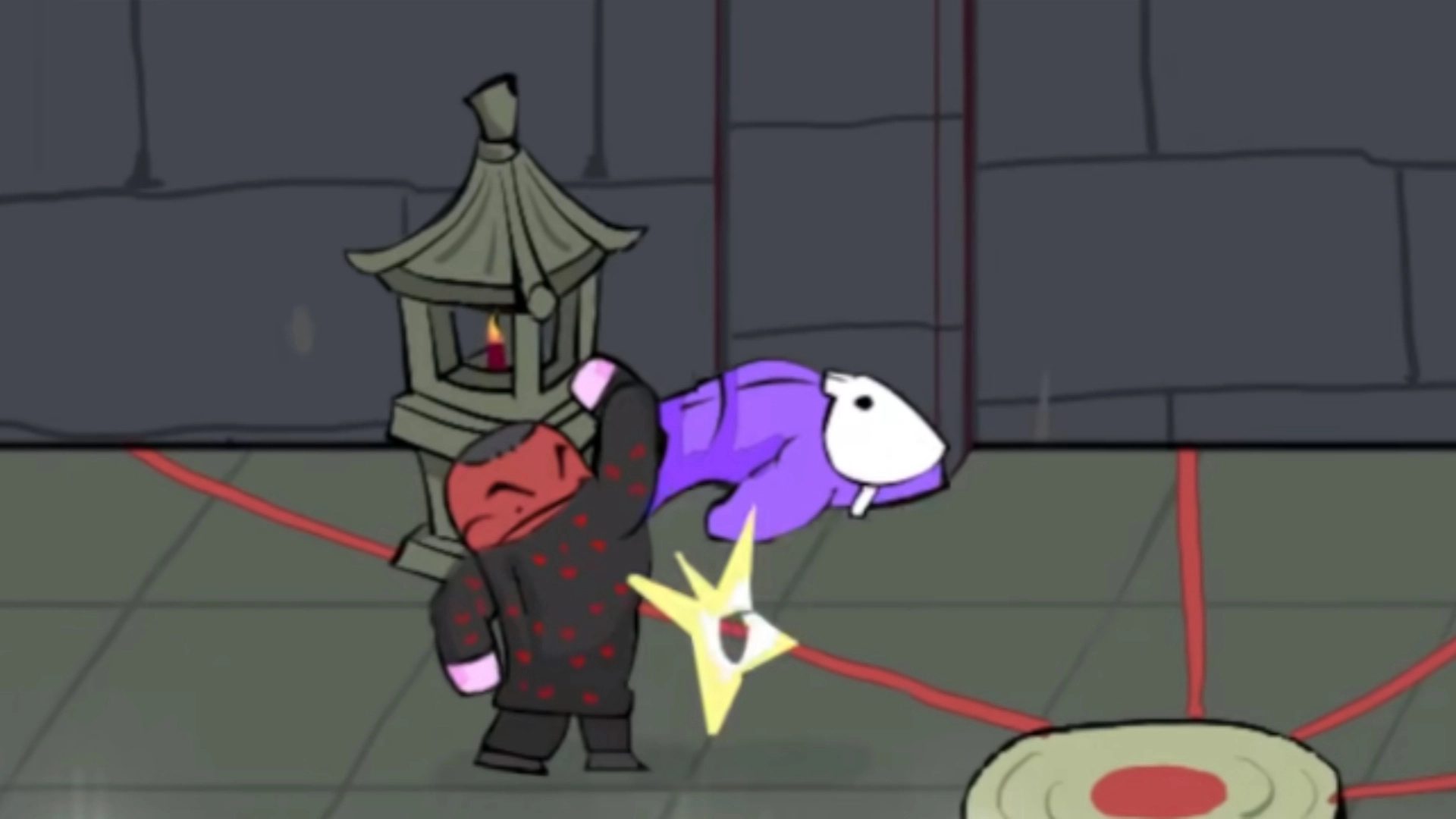 4. 玩家能够借助橡皮鸭道具,把敌人困在一个巨型橡皮鸭当中,使其无法移动。