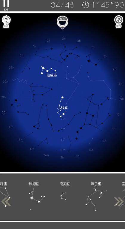 1、选择不同的星座模式,学习并拼接出星座的形状。