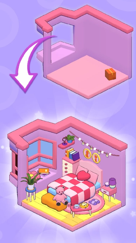 2.房间布局温馨舒适,物品设计细腻逼真,搭配柔和的背景音乐,营造出轻松愉悦的氛围。