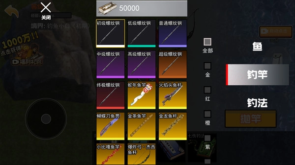 玩家能够通过获取金币与经验值,来强化自身装备,进而提升钓鱼技能。
