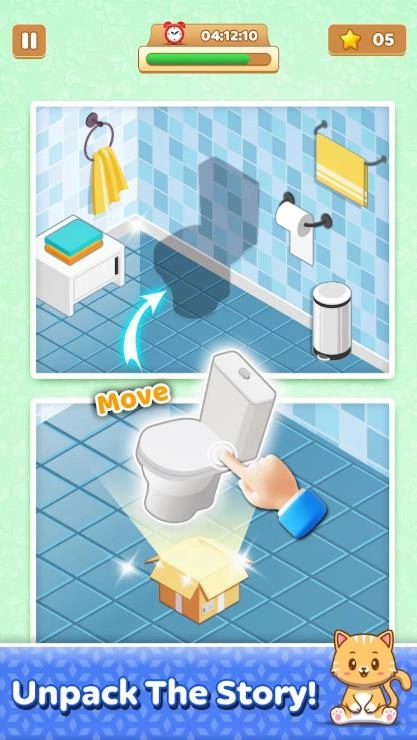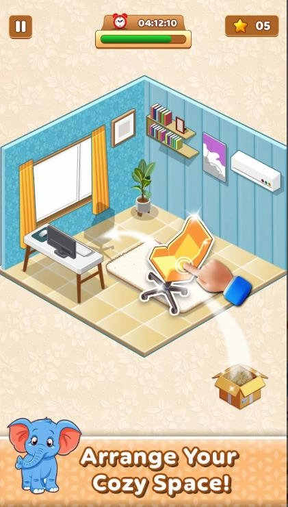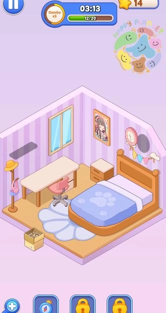 3、随着剧情一步步展开,会解锁更多不同的房间以及各式各样的家具风格,从简约的北欧风到华丽的复古风,各种类型都很齐全。1、点击箱子开启拆箱操作,依次取出里面的物品。