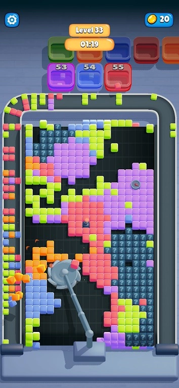 钻井排序是一款既解压又有趣的方块消除闯关游戏。彩色方块会通过传送带不断地被输送到屏幕中,玩家需要操控底部的切割机来消除这些方块。需要注意的是,每个关卡都设置了不同的目标,玩家必须使用切割机击碎规定数量的对应彩色方块,才能顺利通过关卡。这款游戏不仅玩法富有创意,切割机击碎方块时的解压音效也十分出色,再加上简单易上手的规则,绝对会让玩家沉浸在闯关的乐趣中,根本停不下来!