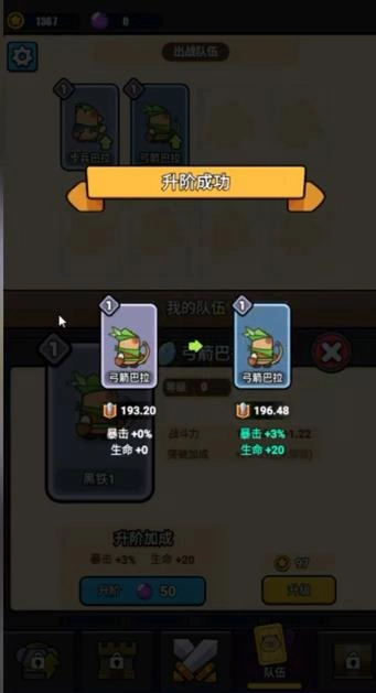 4、战斗结束后收集奖励并强化队伍。