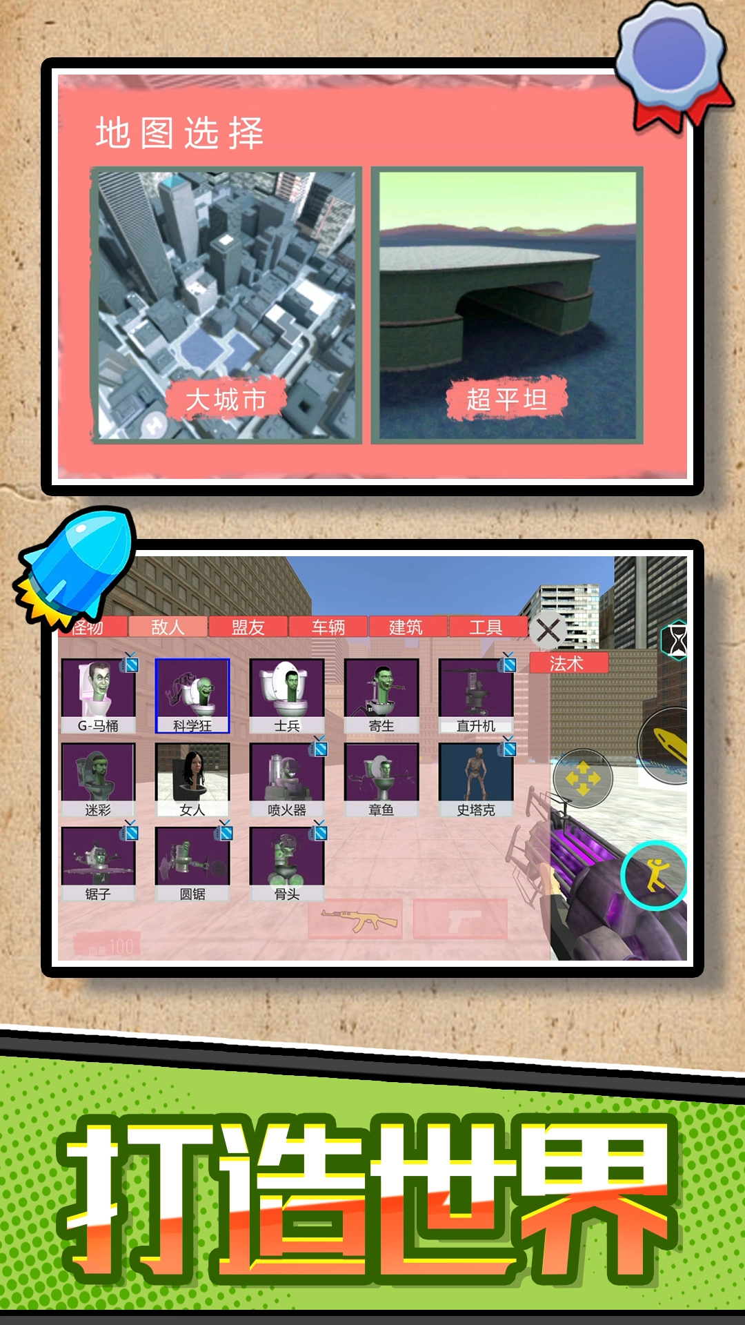 1、感受在荒诞场景里和马桶怪物激烈对战的刺激与乐趣,化身异世界马桶大战中的传奇英雄。