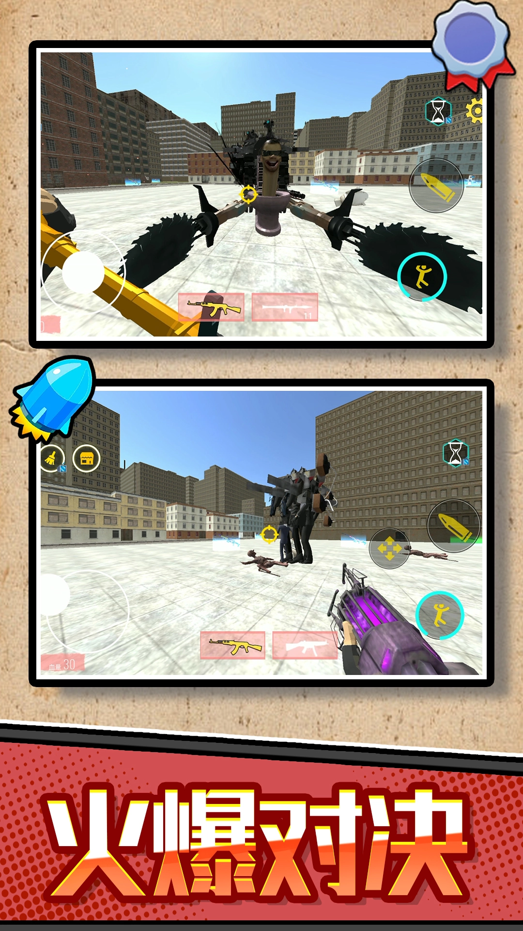3、解锁各类强力武器与特殊技能,达成击败强大马桶BOSS的辉煌战果。