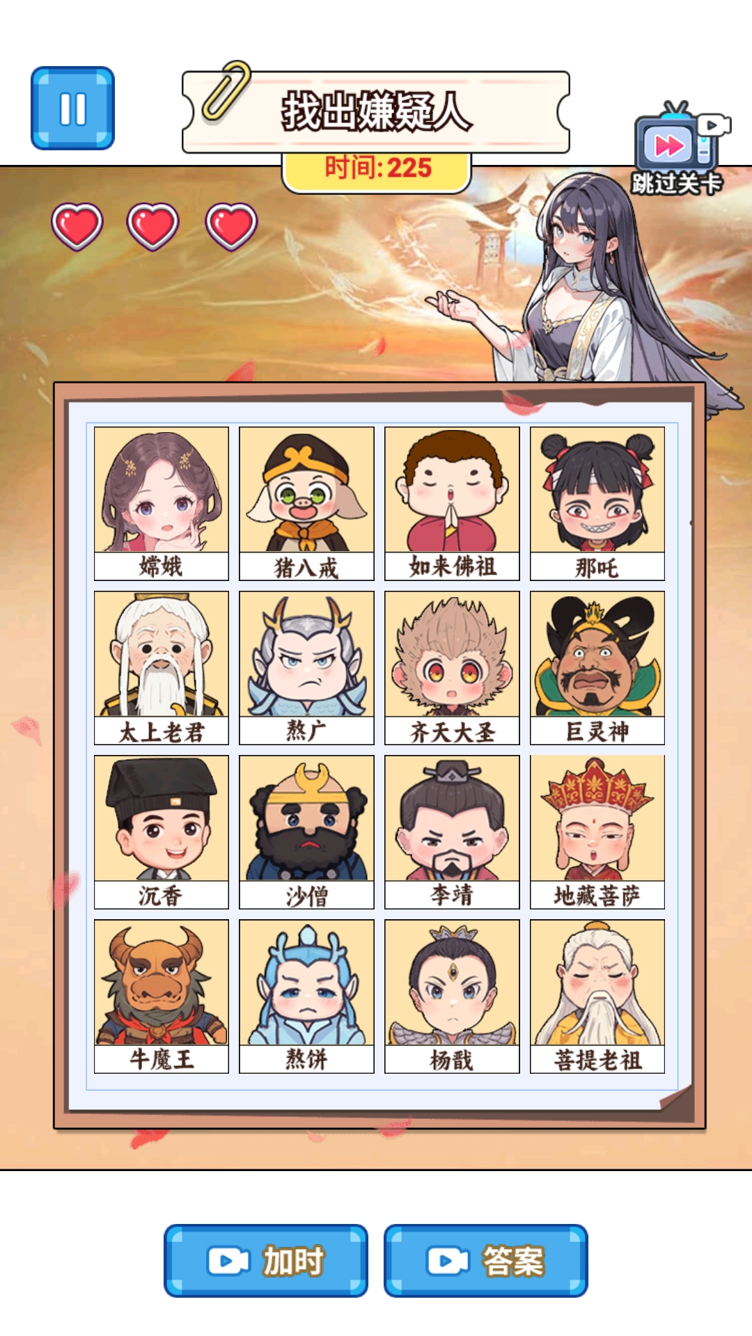 2、与天庭众仙对话,收集他们的证词,从话语中发现矛盾点或关键信息,辅助判断嫌疑人。