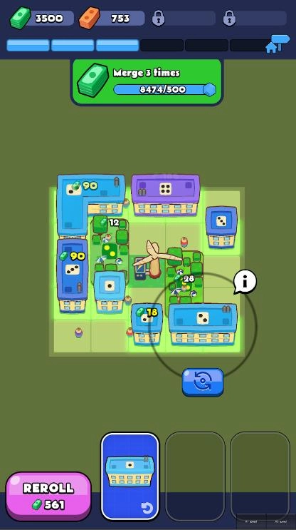 你将化身为一位肩负重任的城镇经理,接管一个不起眼的小镇,并通过策略性地规划和合并建筑物,打造出一座繁荣的城市。游戏将解谜、放置元素与城市建设巧妙结合,带来一种全新的游戏体验。在这款迷人的游戏中,你的目标是最大化城市的资源利用效率,让每一座建筑都发挥出它应有的价值。而随着城市不断发展壮大,新的挑战和目标将接踵而至,激励你不断探索最佳策略。