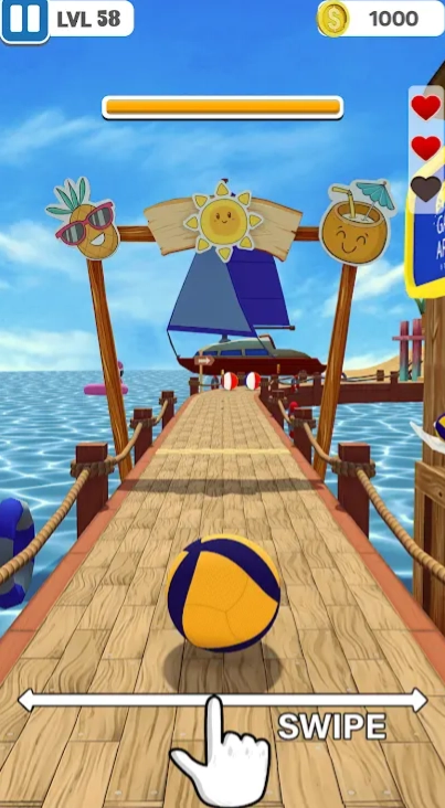 在冲刺沙滩球游戏中,玩家将操控一颗色彩缤纷的球,在阳光明媚的沙滩场景里展开冒险。面对变化多端的关卡,得灵活避开尖刺、深坑之类的障碍。游戏画面清爽,音效轻快,操作简便却充满挑战,适合不同年龄段的玩家。每一次顺利通关,都能获得满满的成就感,赶紧来参与这场精彩的滚球之旅吧!