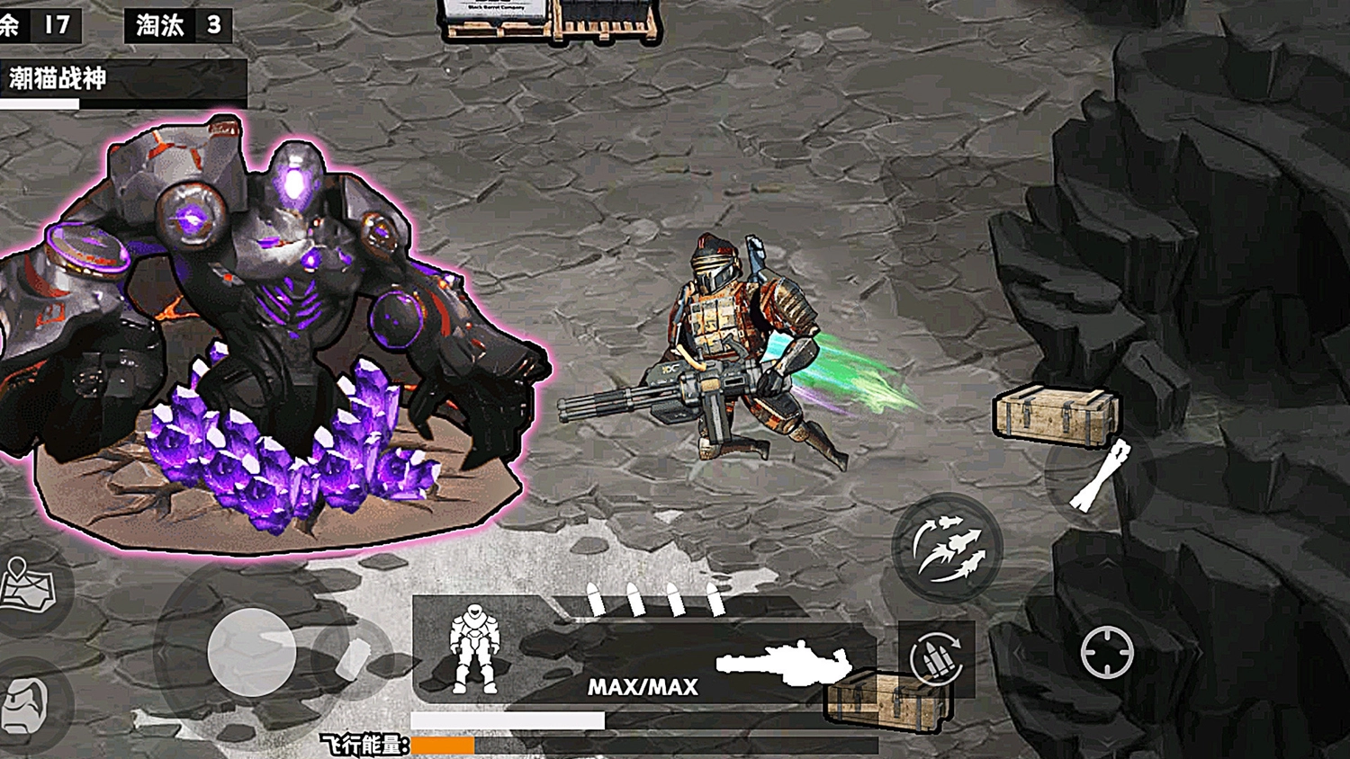 2、通过虚拟摇杆控制修勾移动,在场景中寻找掩体、资源和敌人位置。