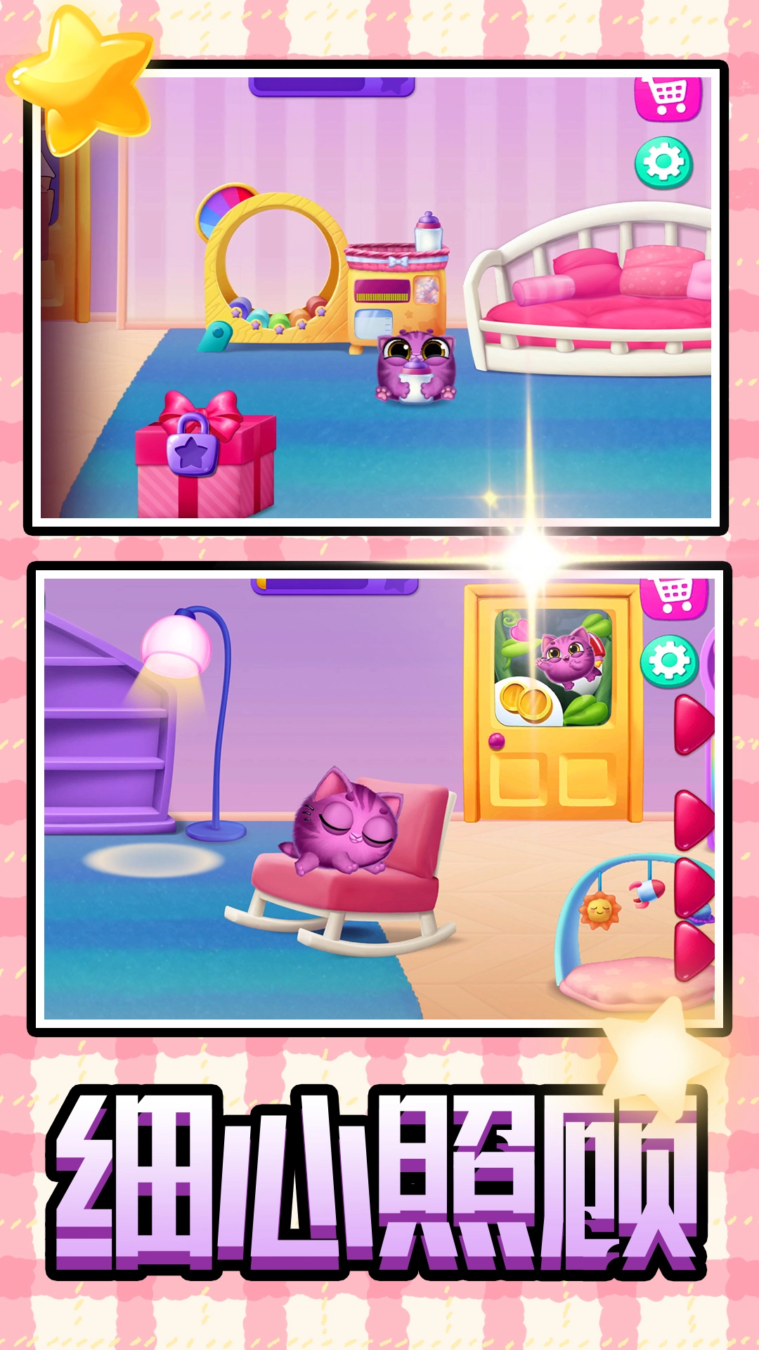 1.玩家需要从喂养、训练、清洁到陪伴,全方位照顾猫咪小精灵的成长。