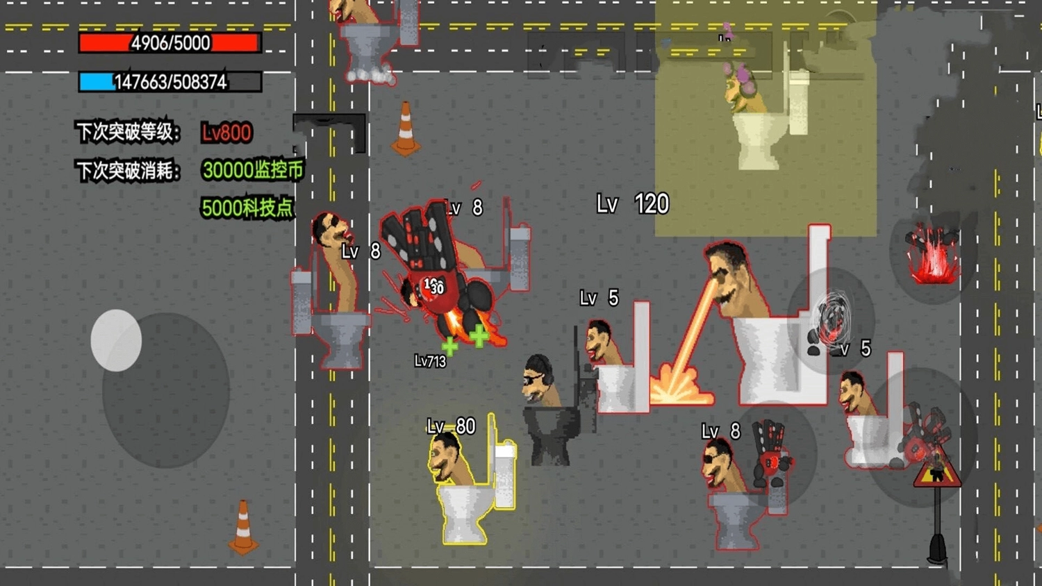 1、和马桶人展开战斗,战胜它们来获取经验值,以此提升监控人的等级,让你变得更加强大。