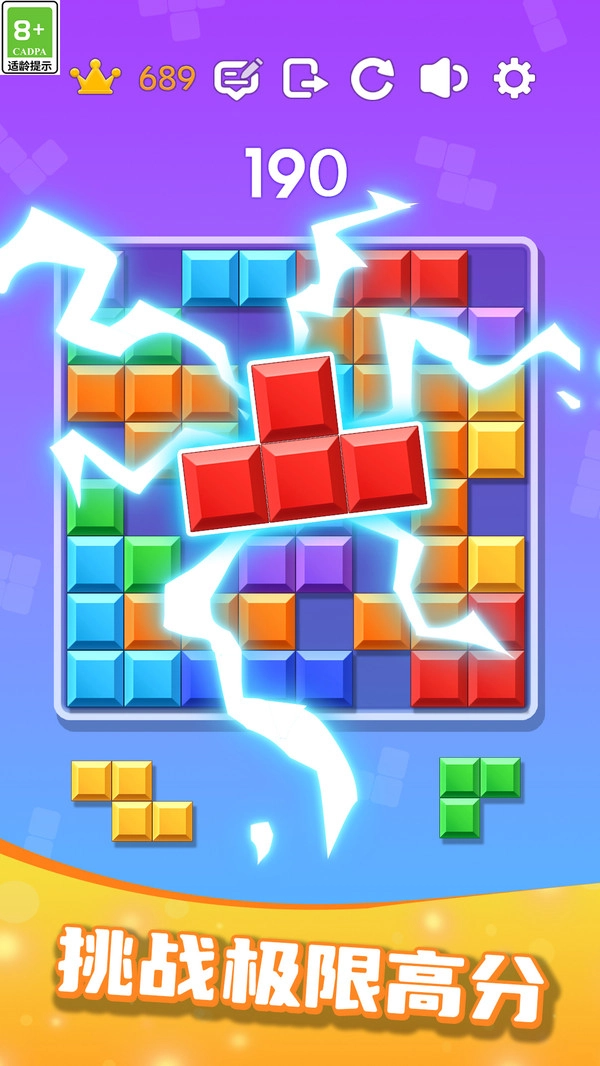 3、小小简单的闯关冒险游戏,学习每一次的俄罗斯方块组合,简单操作。