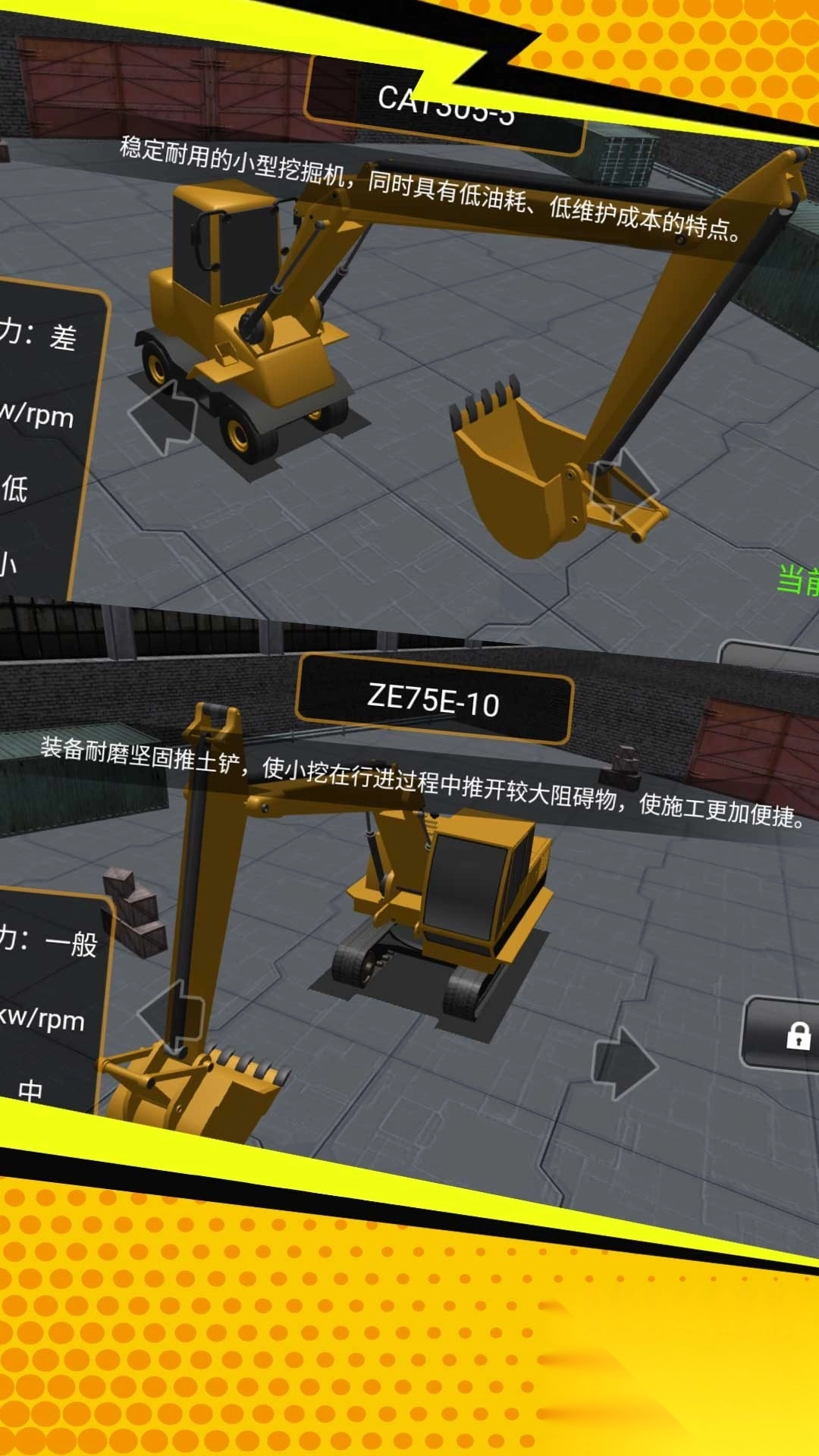 3. 随着游戏的不断推进,玩家能够逐步解锁轮式挖掘机、履带式挖掘机、装载机、推土机等各式各样的工程车辆。
