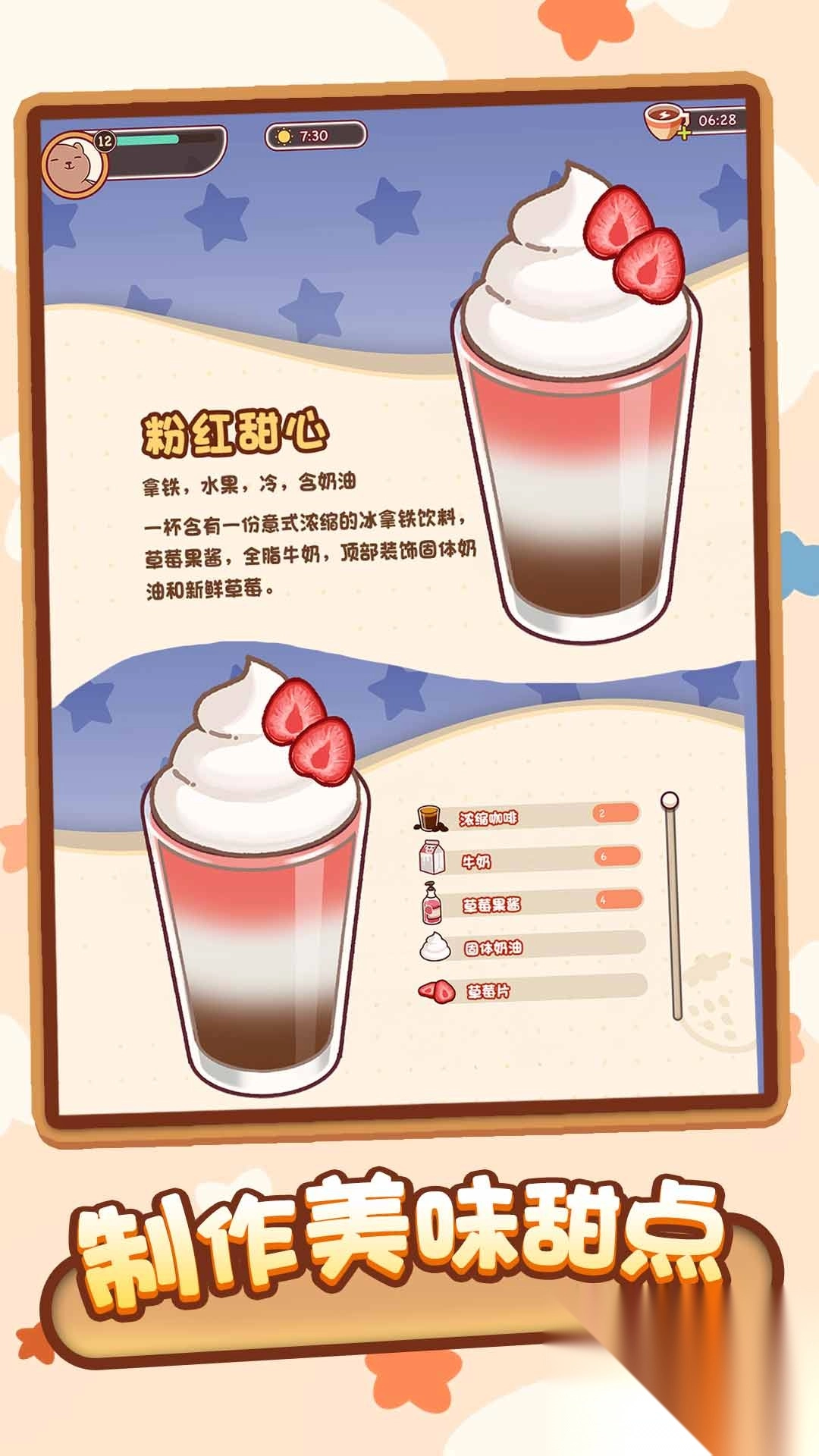 2、金币要省着花,优先升级影响大的项目,比如咖啡机精度、出餐速度这些;甜点原料可以慢慢攒,这样能确保成本在可控范围内。
