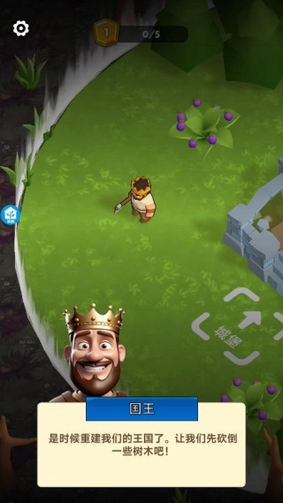 1、进入游戏后跟随国王开启王国建造之旅,我们先去砍伐一些树木吧。