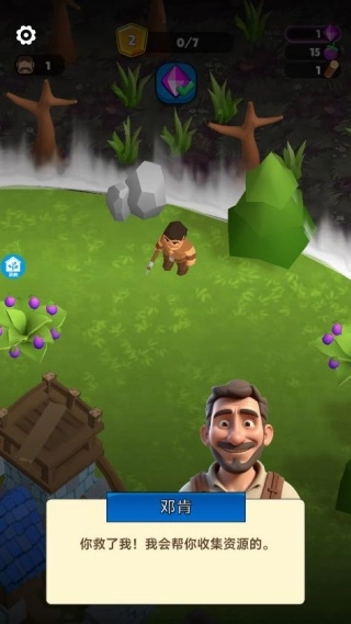 2、通过滑动屏幕来灵活操控角色移动,在伐树的同时收集足够的木头资源。