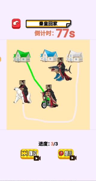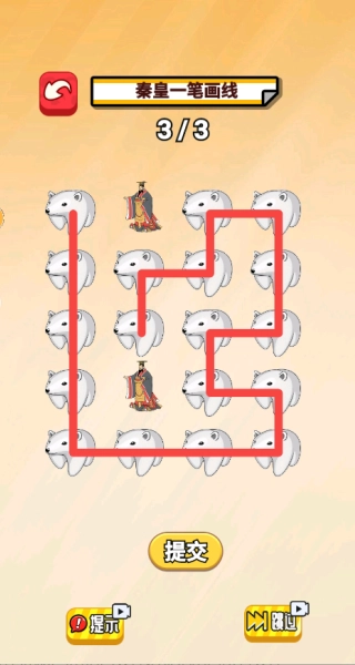 3、秦始皇一笔画线:需要将所有的熊画线连接起来,给秦始皇打造一个安全的回家路线。