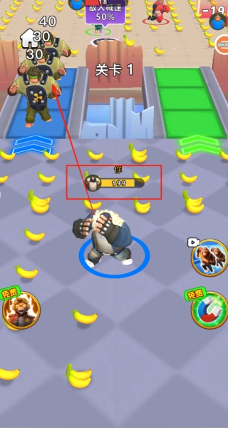 2、控制猿猴灵活移动,迅速的收集散落的香蕉,同时也要堤防周围的敌人。
