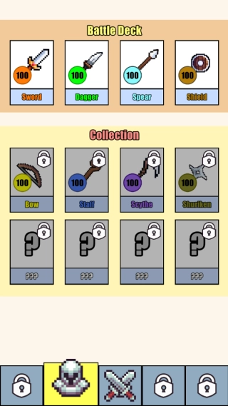 1.每把武器的战斗力由其顶部的数字球决定,每次被攻击都会扣除1点数值,归零即淘汰。
