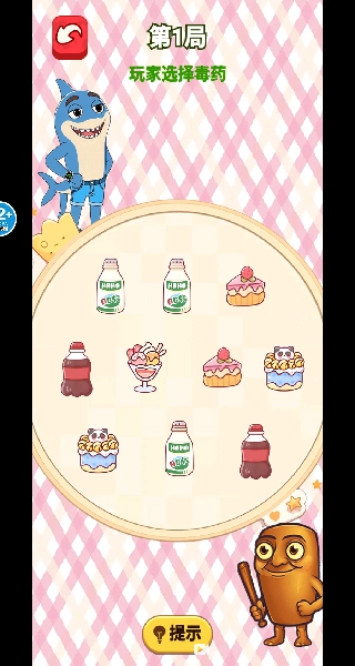 1、每局开局时,从指定零食里暗中选定一种当作毒药,要保证所选零食具有迷惑性,不容易被对手察觉。