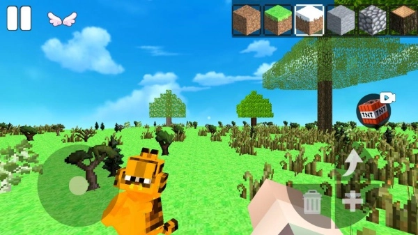 1、这款游戏的世界由方块搭建而成,是一个开放的空间,玩家能够不受限制地在地图里探索,同时可以收集木材、矿石这类资源。