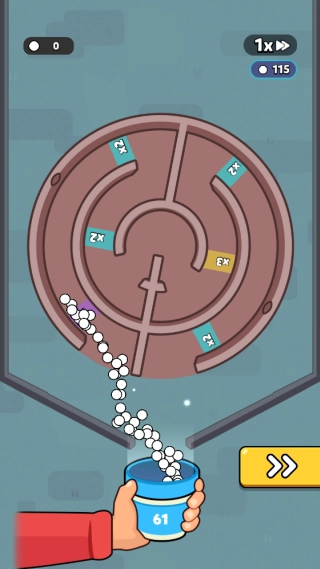 2.玩家需在迷宫里收集足量球球,通过转动迷宫使球球得以穿过BUFF墙,提升数量,进而顺利落入杯子中。