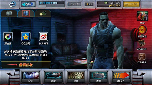 切换到邀请好友页面即可分享这款游戏,成功分享后还能获取金砖奖励。