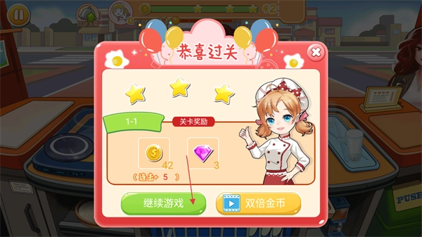1、在游戏主界面,根据提示选择已解锁的关卡进入餐厅经营环节。