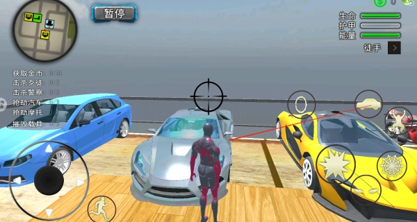 4、驾驶操作挺简单的,左右按钮控制方向,右侧是刹车和油门,开车时还得留意上方角色的情况,别撞了。