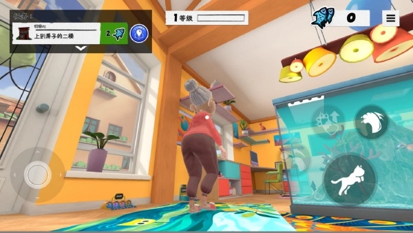 2.以猫咪的第一人称视角展开玩耍,使用左侧虚拟按钮来控制猫咪的行动。