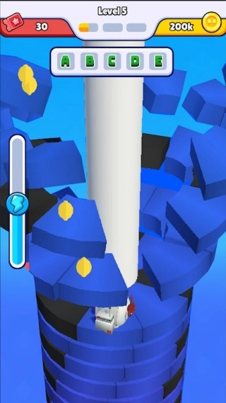 4. 用手指在屏幕上滑动来控制角色的下坠方向,这样角色就能更顺利地破坏更多平台,同时收集到更多金币啦!