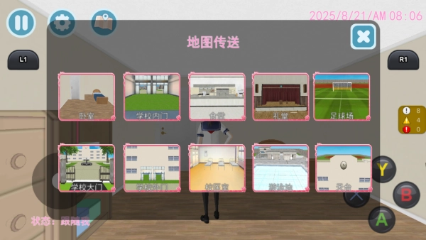 2. 校园环境丰富多样,涵盖教学楼、图书馆、体育馆等不同场景,所有场景都支持自由探索,还能触发各类事件。