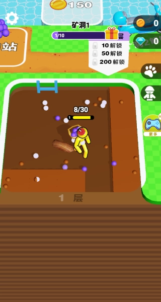 3、当所在区域的挖矿效率下降时,利用升级后的工具往更深的地方探索,以解锁新的矿物资源。