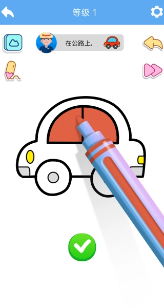 1、启动游戏并进入,从1级开始尽情游玩,点击屏幕上的画笔,依据要求进行绘画。