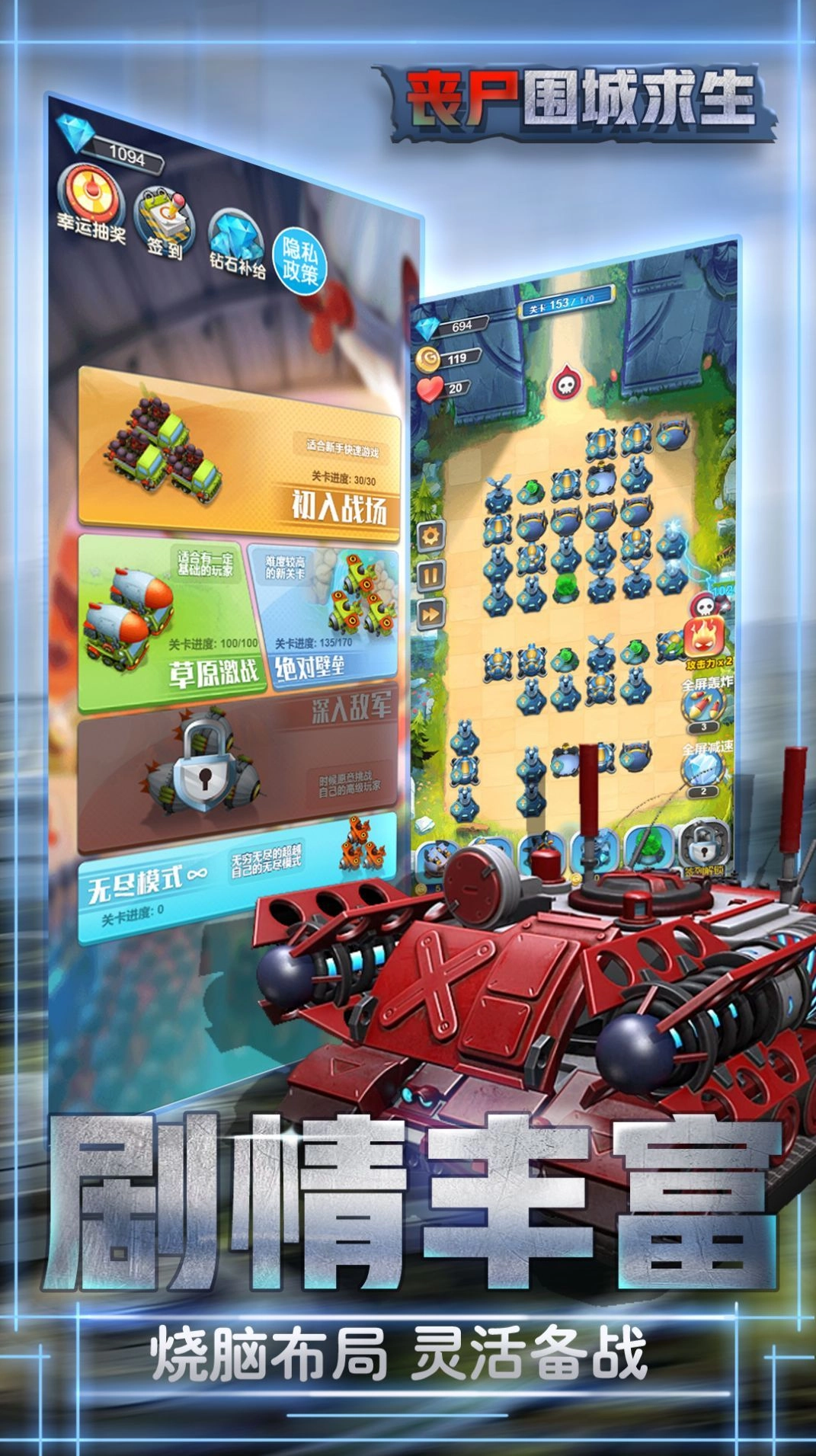 2、运用作战策略能力消灭所有僵尸,每次挑战都能体验精彩。