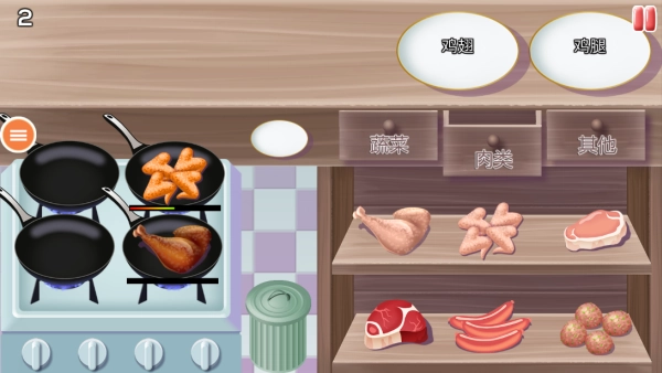2. 客人的订单会源源不断地出现,玩家得掌控好烹饪时长,迅速完成烹饪并把菜品端上桌。