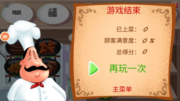 3.一旦上菜不及时,客人的订单没能够及时处理,就可能导致挑战失败。