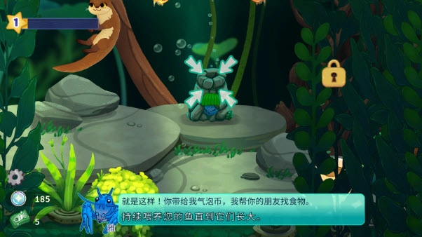 4、把得到的气泡币交给“雅”,这样雅就能给我们提供更多鱼食了。