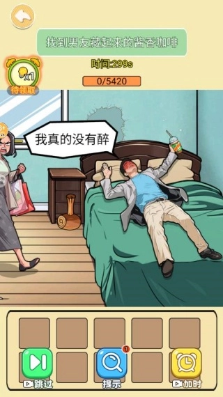 2、在房间里搜寻各类物品,像衣服、鞋子、配饰之类的,把这些物品拖拽到油腻男的身上,助力他提高魅力值。