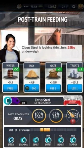 3、训练、比赛与马匹成长系统均力求逼真,玩家既能在养成过程中收获乐趣,又能感受赛马竞技带来的紧张刺激。