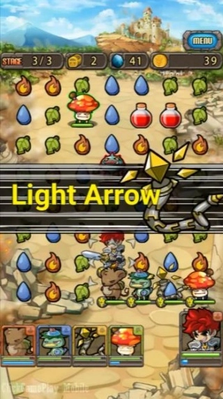 1、拖动相同颜色的方块来发起攻击,触发链式反应以击退敌人。