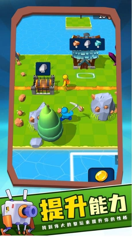 这是一款充满趣味的采矿探索游戏,玩家开局便置身于一座荒岛之上,需要通过解锁各类工具装备,开启对岛屿的探索之旅并着手挖矿。